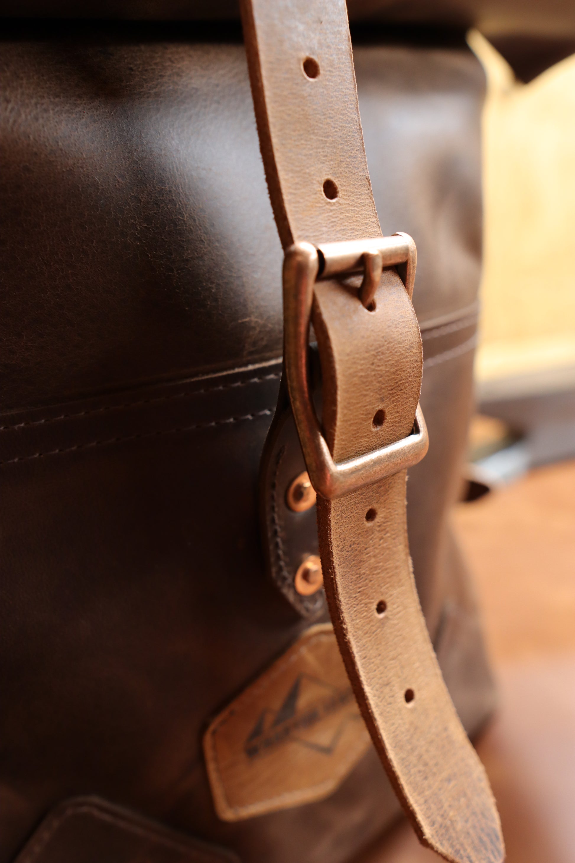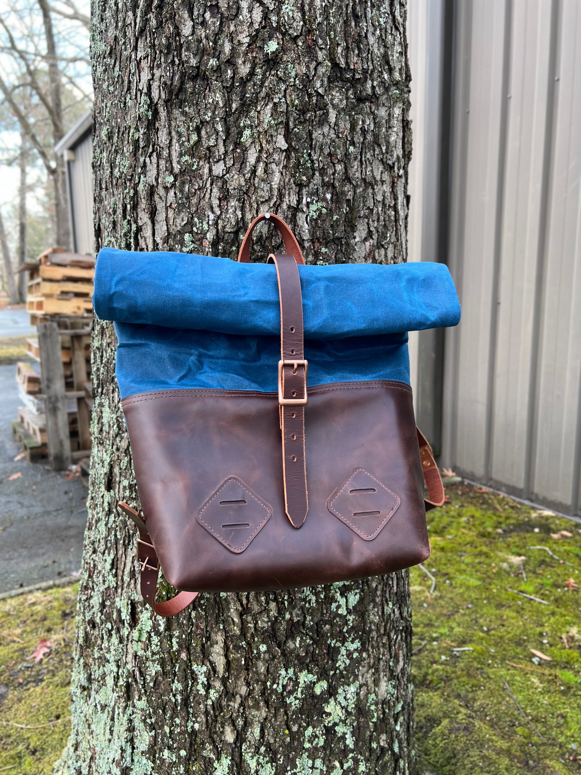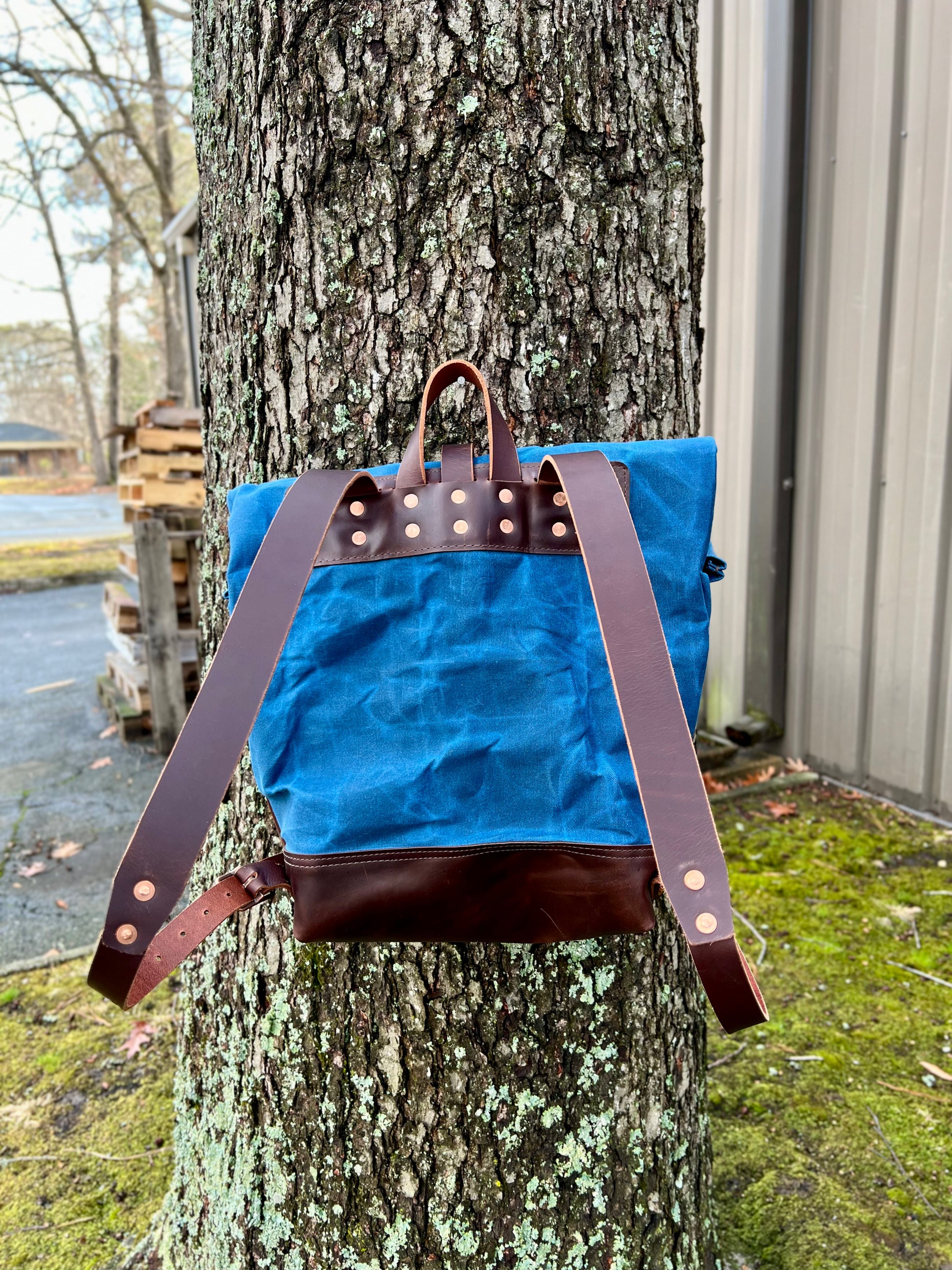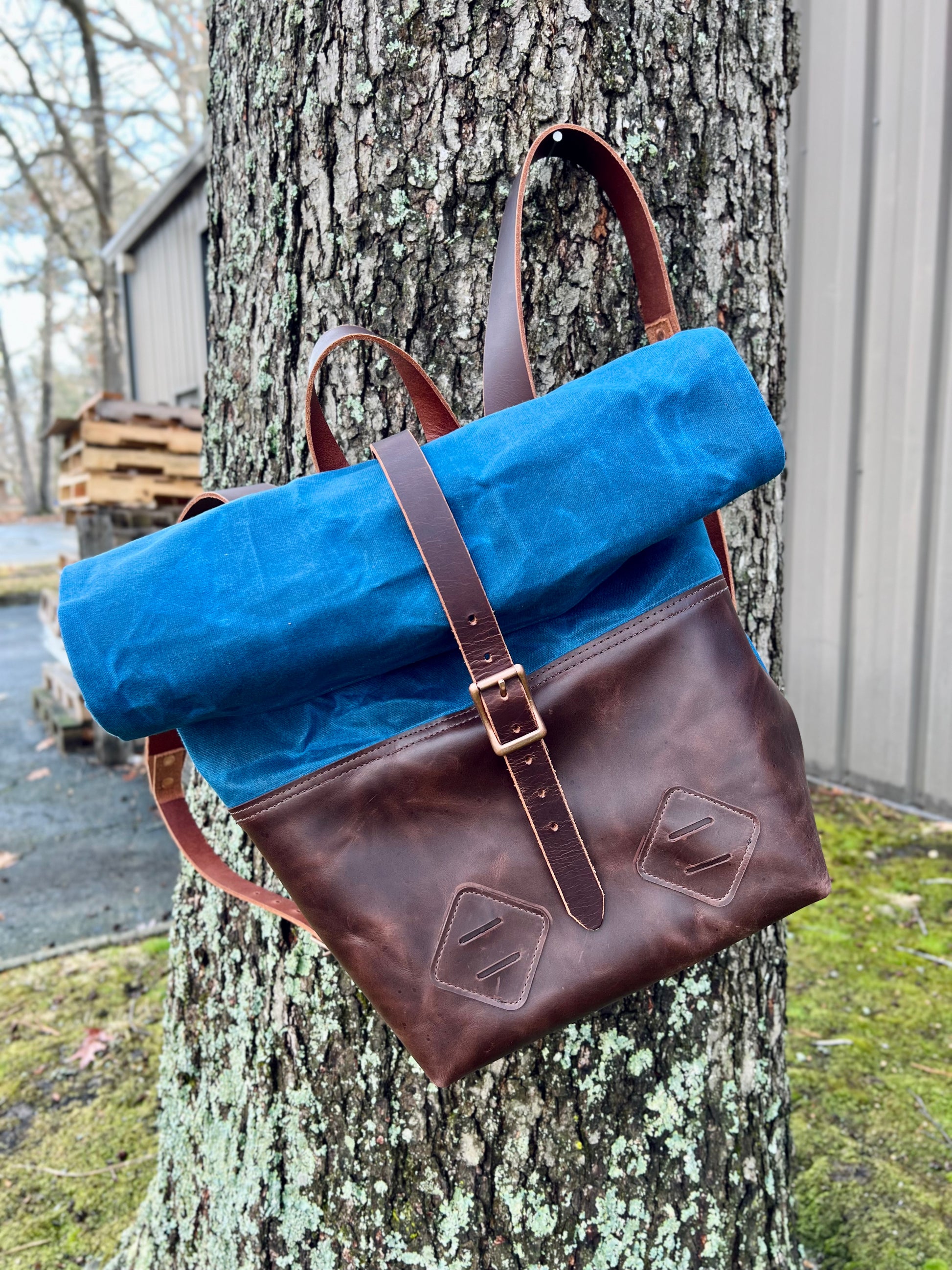 I use heavy duty belt leather for the straps. I can make the bag out of all leather, or part leather and part waxed canvas. Either way, it's water resistant, and ready for all your adventuring.