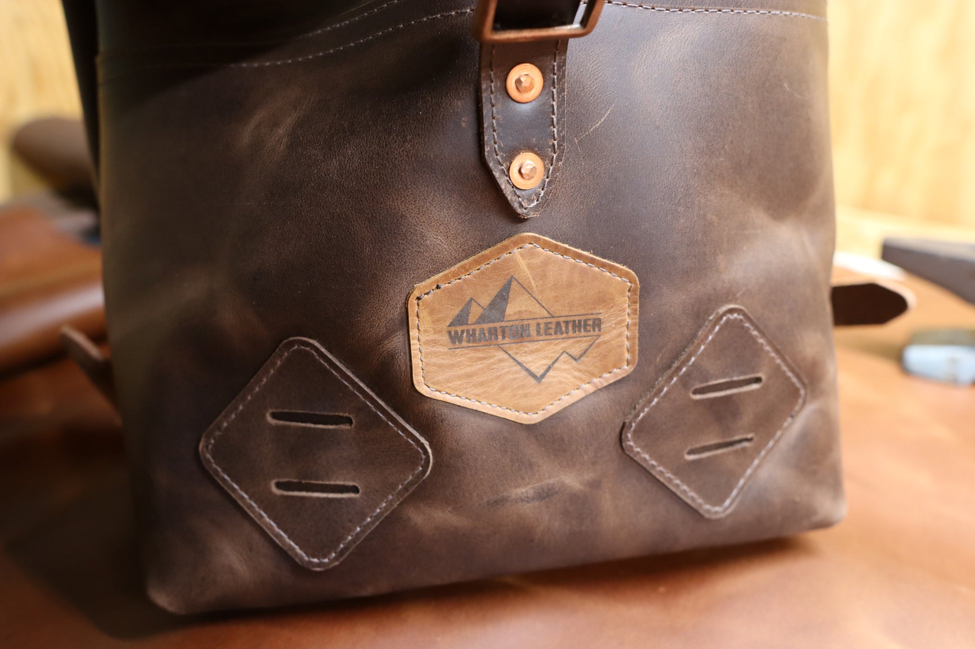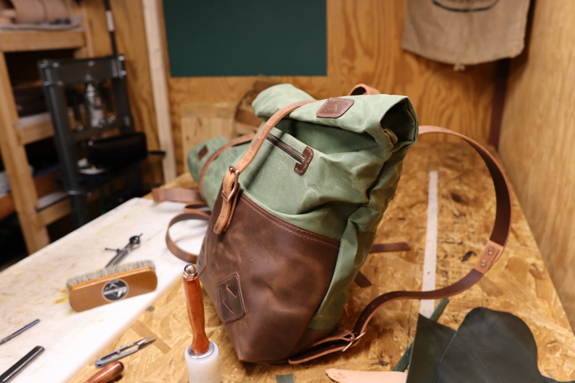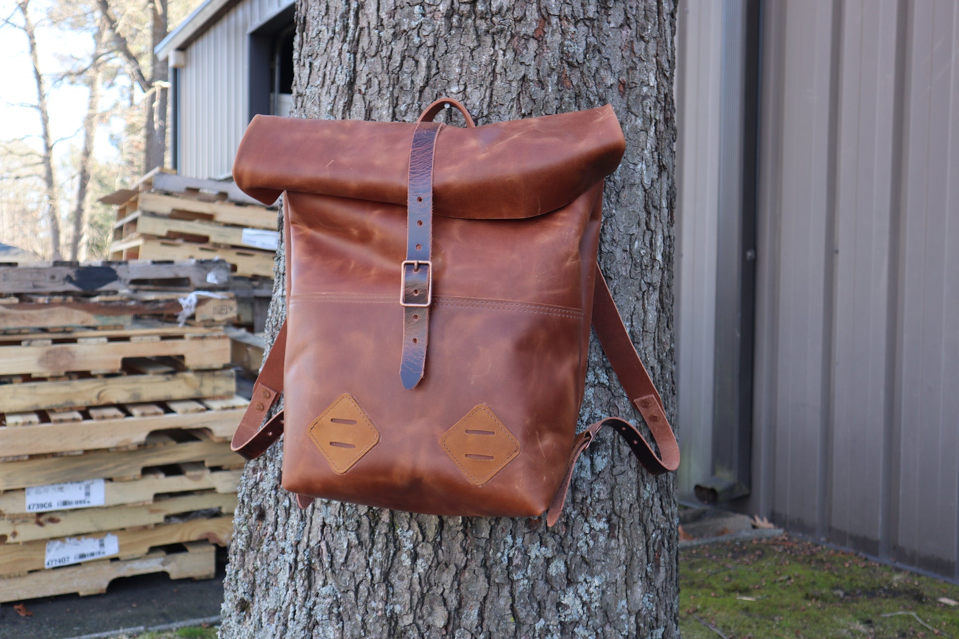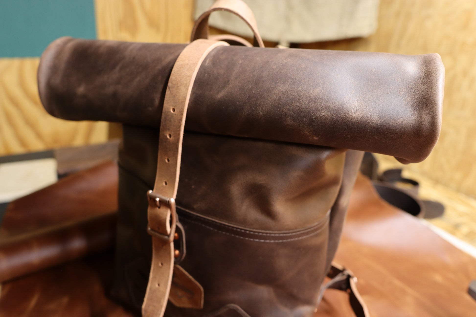 I use heavy duty belt leather for the straps. I can make the bag out of all leather, or part leather and part waxed canvas. Either way, it's water resistant, and ready for all your adventuring.